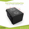Electric oven with infrared cooking plates. Volume: 50L. Oven power: 1800W. Big ring power: 1500W(size: 200mm). Small ring power: 1200W(size:165mm). Oven+big hot plate 3300W. Temperature of the plates can be regulated - stages 1-5 on the third knob indicate the temperature range 100 to 500 degrees. Large double glass window. Inner lamp. 120min timer with end sound signal. Excellent 90-230℃ temperature selector. Oven can work at the same time with the big cooking plate. 9 different functions. 220-240V,50/60HZ |