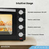 Capacity: 30LPower: 1600W Hotplates:1000W+600W Stainless steel heating element 60 min timer with alarm Thermostat 100-230C Heating functions: Off / Heating from top / Heating from bottom / heating from top and bottom The large interior lighting Double glass Convection function Stainless steel handle Accessories: baking tray, tray handle 220V-240V 50 / 60Hz |