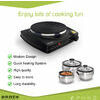 Ideal for college dorms, cottages or camping. Hotplate with a diameter of 18.5 cm. Indicator light. Protection against overheating. Anti-slip feet. Power input 1500 W. 220-240 V, 50/60 Hz. |