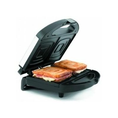 Square sandwich maker, 230V, 750W. Cool touch housing. Non-stick plate. Thermostat for temperature control. Thermal fuse for extra safety. Heat insulated handle 2 indicator lights - mains operation and temperature level reached.