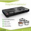 2 hotplates with a diameter of 18.5 and 15.5 cmContinuously controlled thermostat Indicator light Protection against overheating Anti-slip feet Power input 1000+1500 W Distance between hotplate: 4.9 cm 220-240 V, 50-60 Hz |