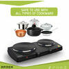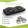 2 hotplates with a diameter of 18.5 and 15.5 cm. Indicator light. Protection against overheating. Anti-slip feet. Power input 1000+1500 W. Distance between hotplate: 4.9 cm. 220-240 V, 50/60 Hz. |