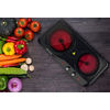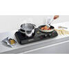 Two glass hoplates: 18,7cm and 16,4cmTwo operating on/off indicator lights Adjustable temperature control Auto-thermostat Power: 1200 + 800W. |